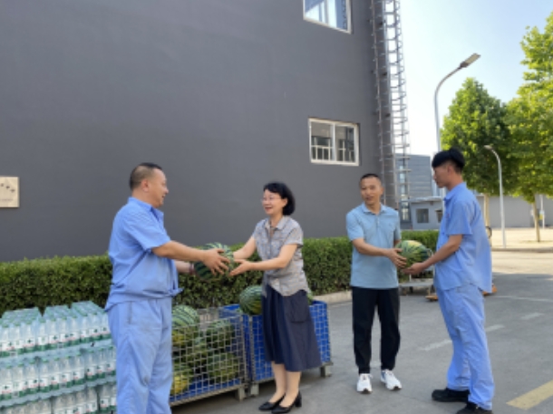 2024年6月17日,炎炎夏日,骄阳似火,市总工会党组成员、副主席张艾敏,市机械冶金建材工会主席党利勇、副主席牛远方一行来我公司进行“夏送清凉”慰问。张主席一行给职工带来消暑物资,并对企业在加强职工劳动保护、持续改善员工劳动条件、关注员工思想教育、重视企业文化等方面给予肯定。